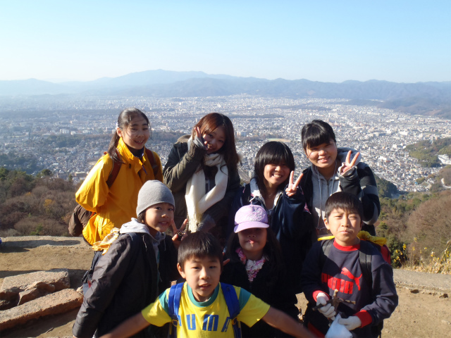 大文字山の『大』の真ん中に到着したよ。京都の街中を一望できるね。天気も快晴だし、本当に気持ちがいいね。ここで、少しずつ作っていこう!!